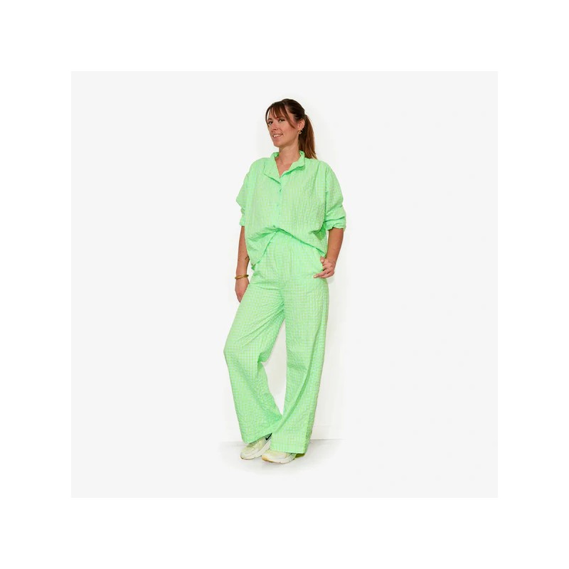 Cette blouse signée W.O.P World Of Pop mise sur un tissu en seersucker en coton BCI, naturellement gaufré, respirant et agréable à porter.